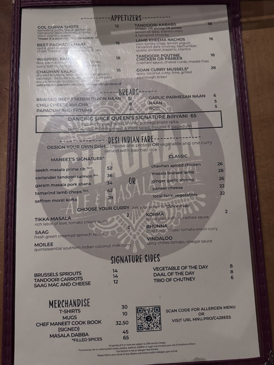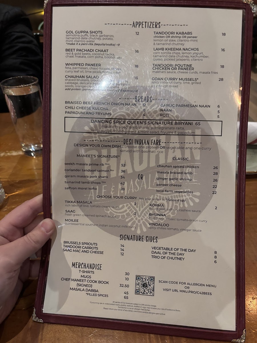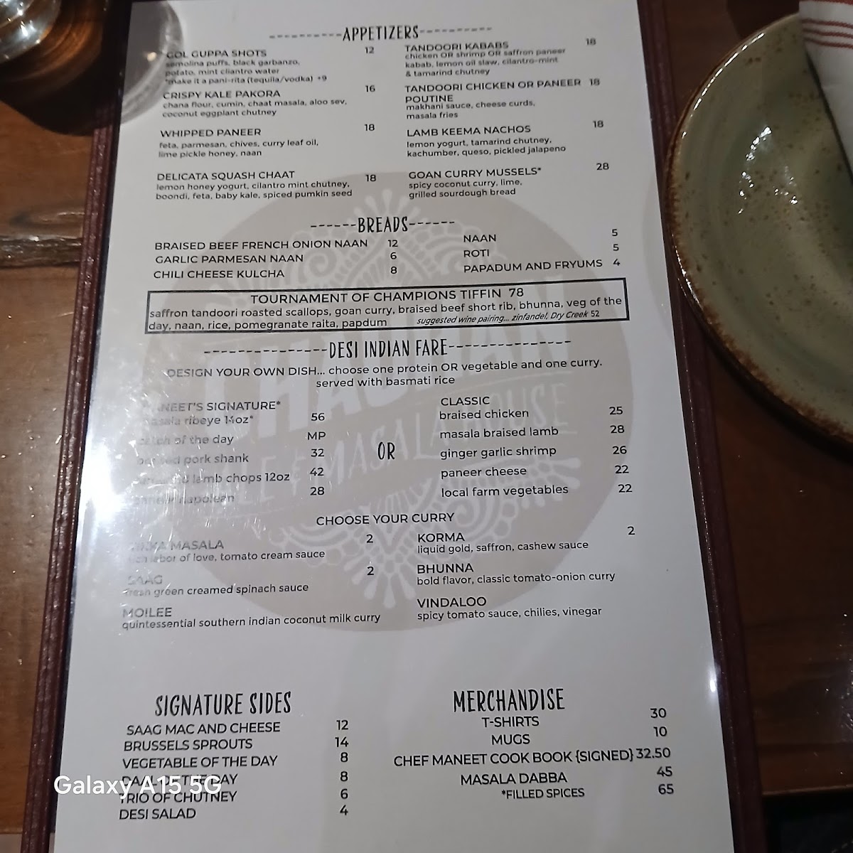saffron sea bass, goan sauce, braised beef short rib, Maneet's homestyle sauce, wild mushroom biryani, pomegranate raita, papadum